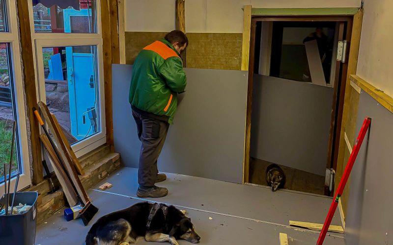 Neues Jahr und es wird weiter am zukünftigen neuen Katzenhaus gehandwerkelt. Am Innenbereich, Fußboden und an den Wänden ging es weiter unter Beobachtung und Neugier von unseren lieben Hunden. Weitere Bilder unter „Unsere Projekte„. (02.01.2026)
