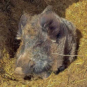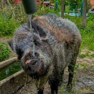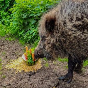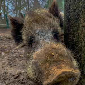 Die Wildschweindame blühte in den letzten zwei Jahren noch einmal richtig auf. Das schöne Aussengehege, in dass sie mit Bolle im Dezember 2021 zogen, sah man ihr auch körperlich an. Sie legte zu und wir waren optisch sehr angetan von ihrem Zustand und deshalb sehr überrascht, dass sie jetzt nicht mehr wollte. Komm gut rüber und freue Dich auf ein Wiedersehen mit deinen Geschwistern Cleo und Eberhard