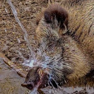 Uschi, die Ziehmutter der Frischlinge hat eine bleibende Erinnerung von Bolle: „Am 11.3.2010, Bolle im zarten Alter von 4 Jahren, wurde von mir nach draußen begleitet. Er lief sehr dicht an mir vorbei. Ich merke etwas später, dass ich am Oberschenkel blutete. Kein Loch in der Hose zu sehen, aber der Oberschenkel hatte ein Loch. Wurde damals mit drei Stichen genäht. Da habe ich eine bleibende Erinnerung an Bolle“. Ein etwas anderes „Tattoo“ ☺️😘🐗🐗